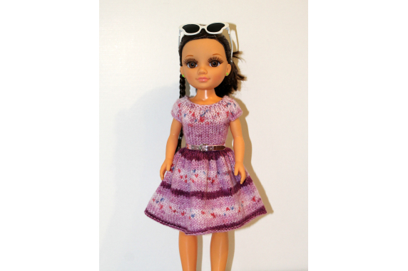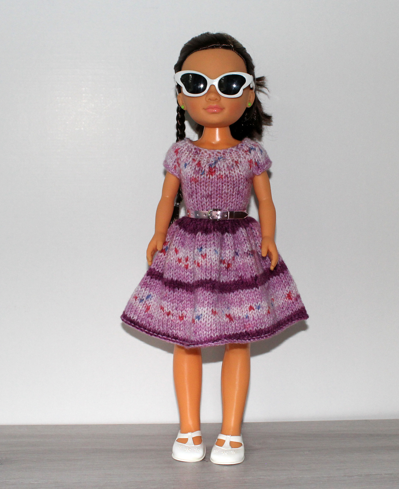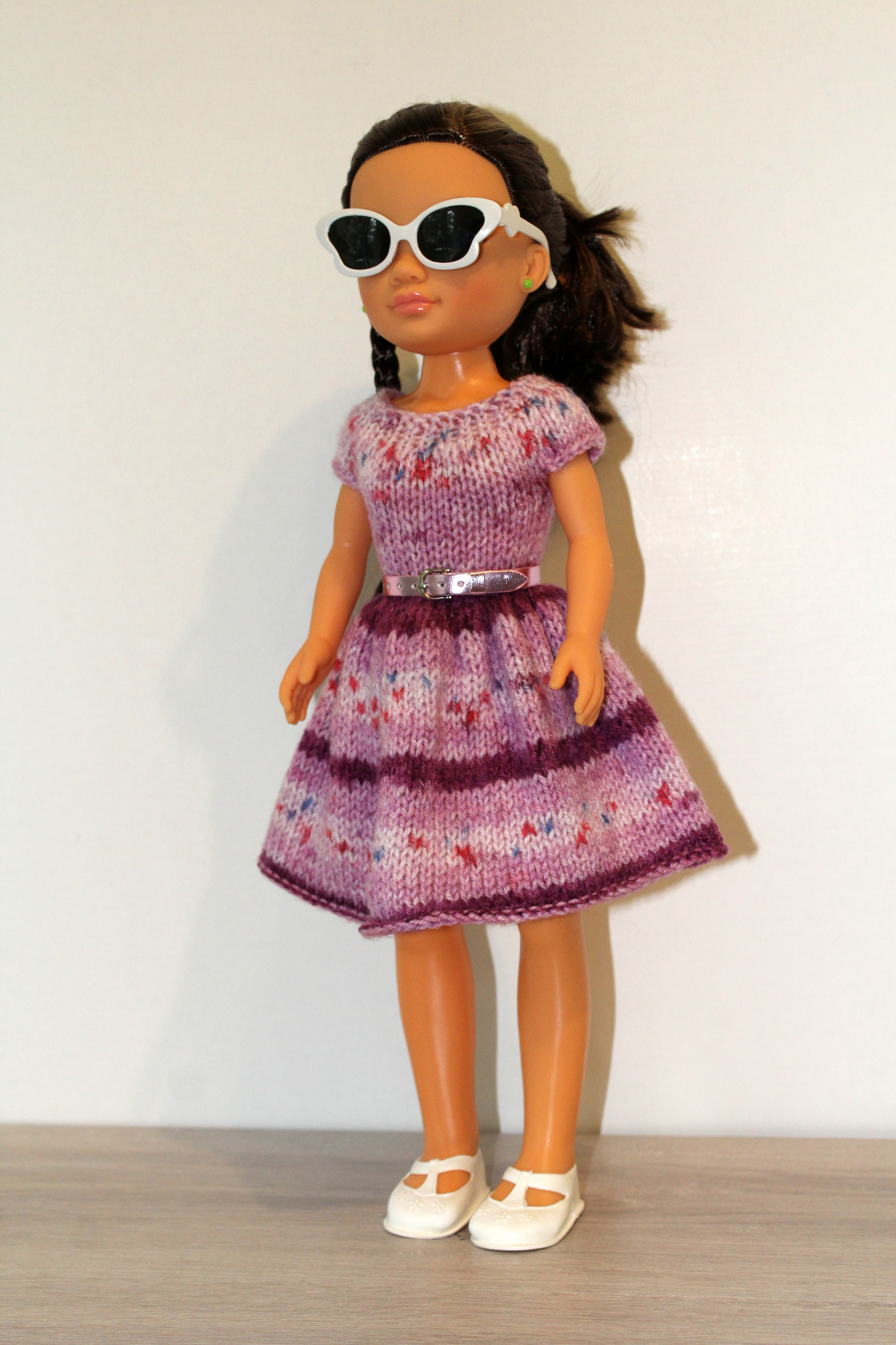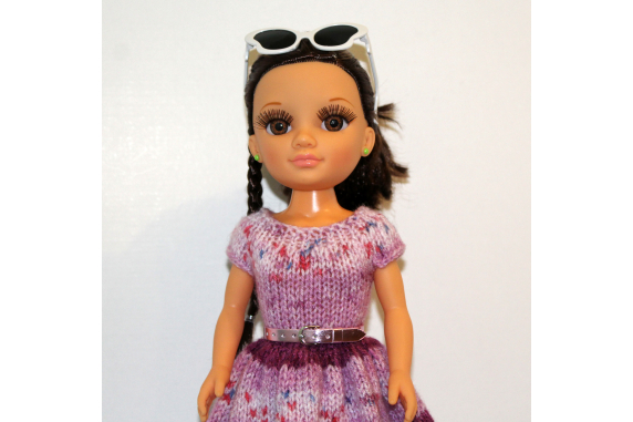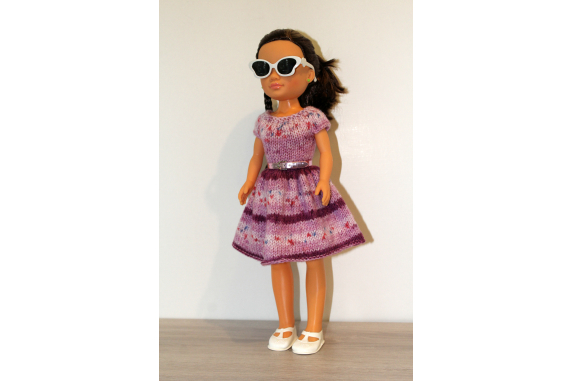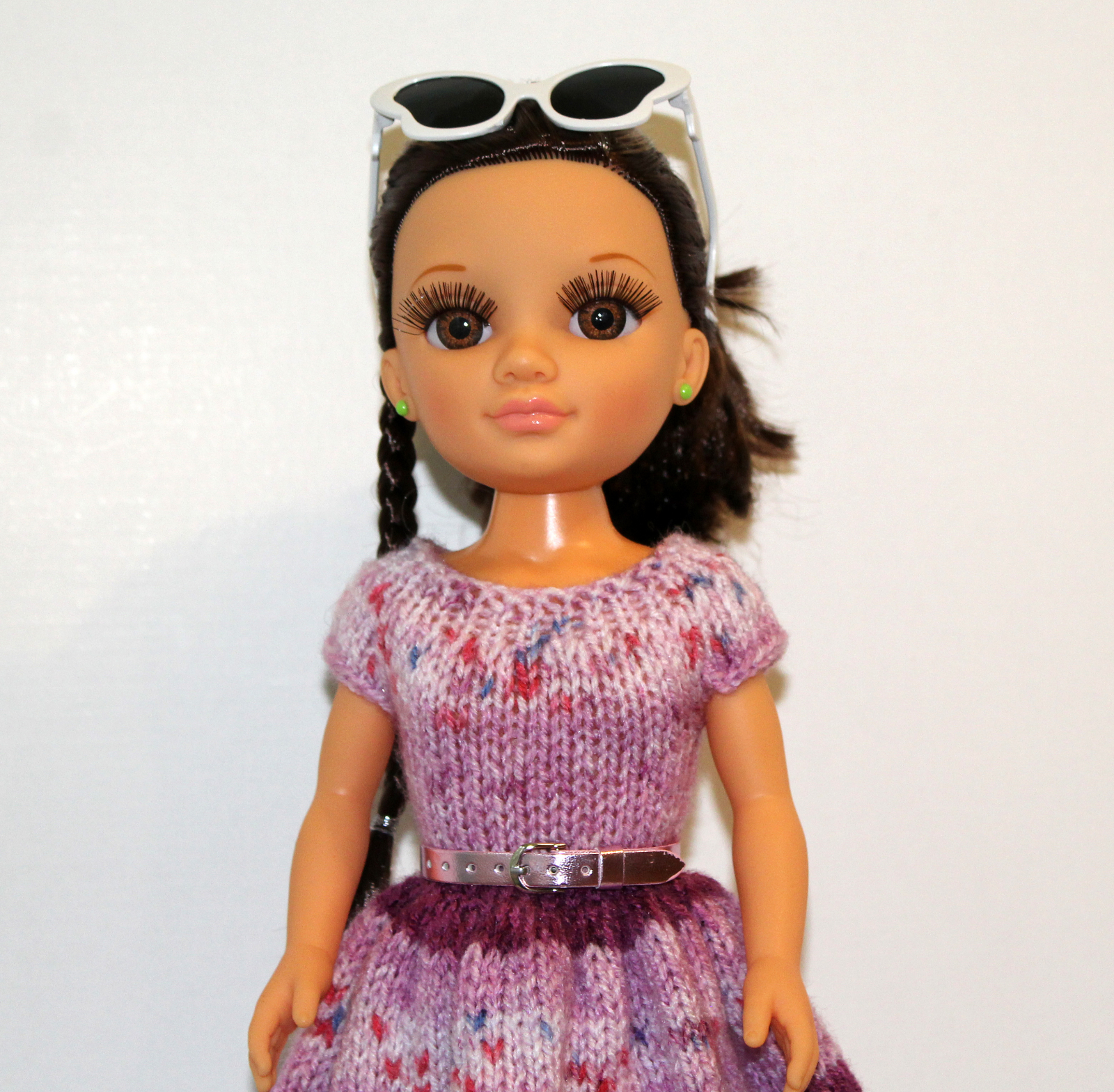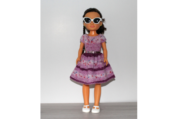 Knitted dress with faux leather belt and sunglasses for Nancy new dolls. Outfit for doll. OOAK.