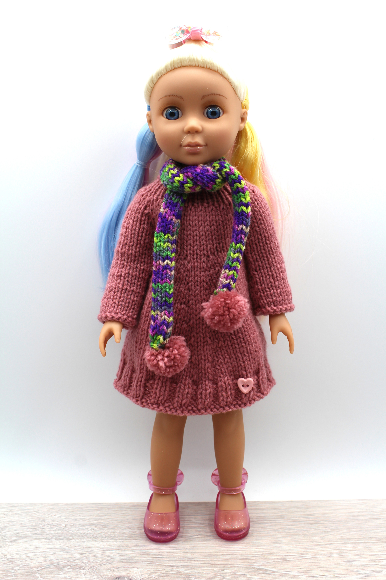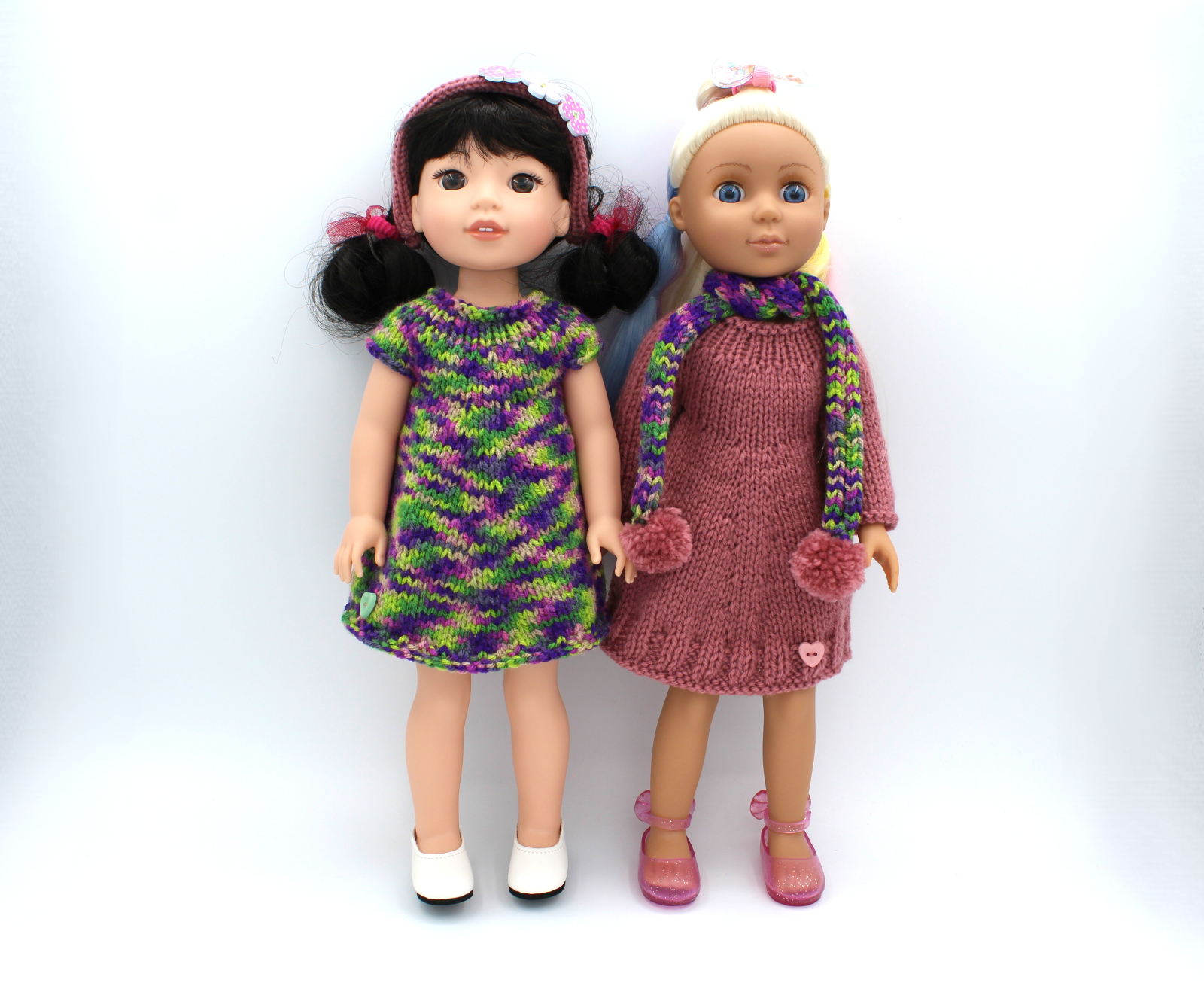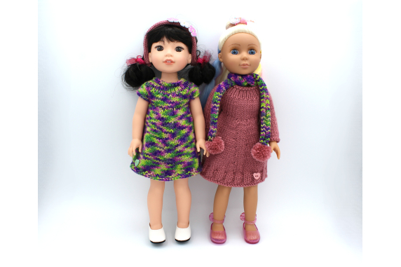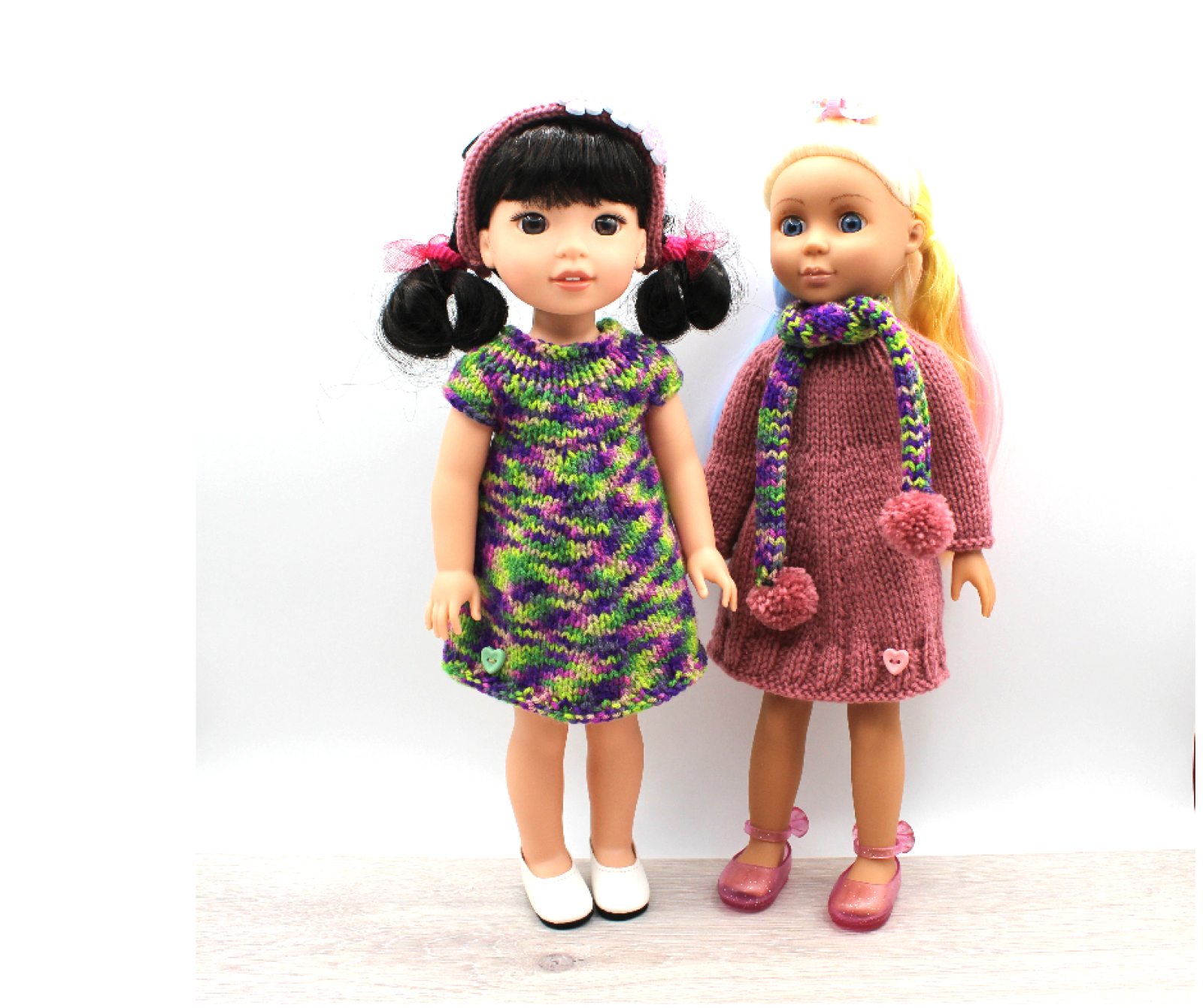 Knitting Pattern for 14.5 inch dolls. Tutorial for two Dresses, Scarf and Headband.