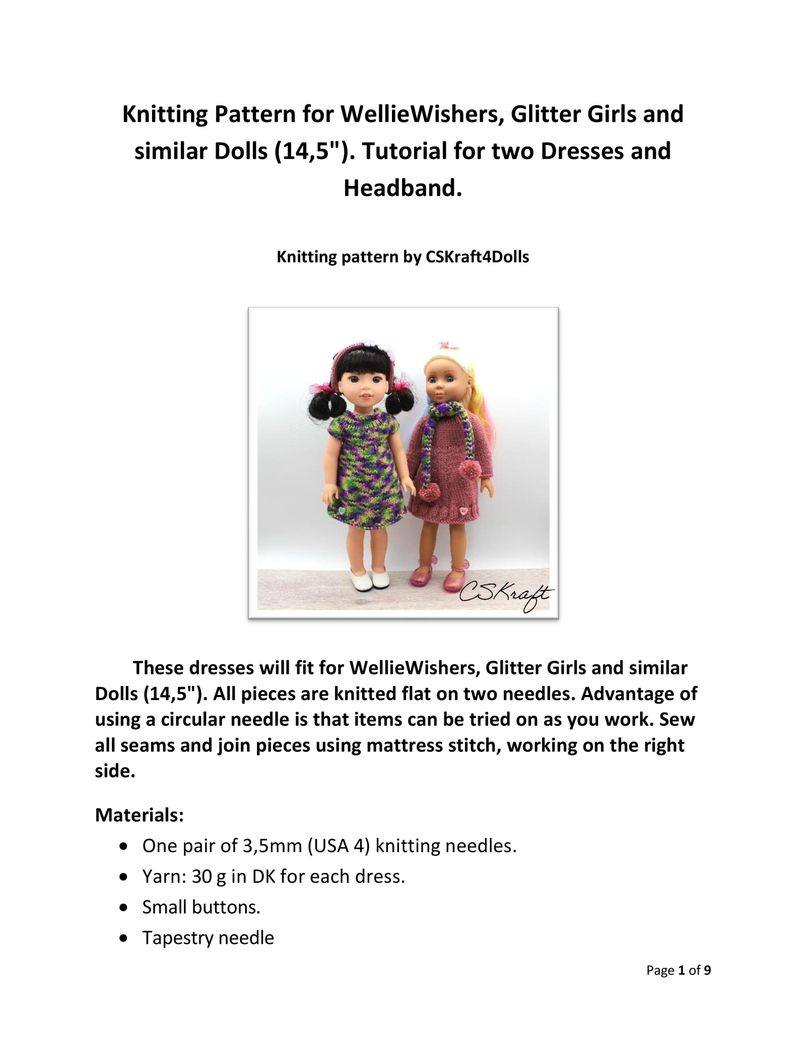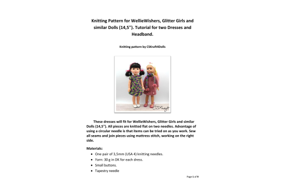 This listing is for a PDF instant download knitting pattern and NOT for a ready-made knitted doll's clothes. Create beautiful outfits for your 14.5-inch dolls with our easy-to-follow Knitting Pattern! This tutorial includes step-by-step instructions to knit two adorable dresses and a stylish headband.