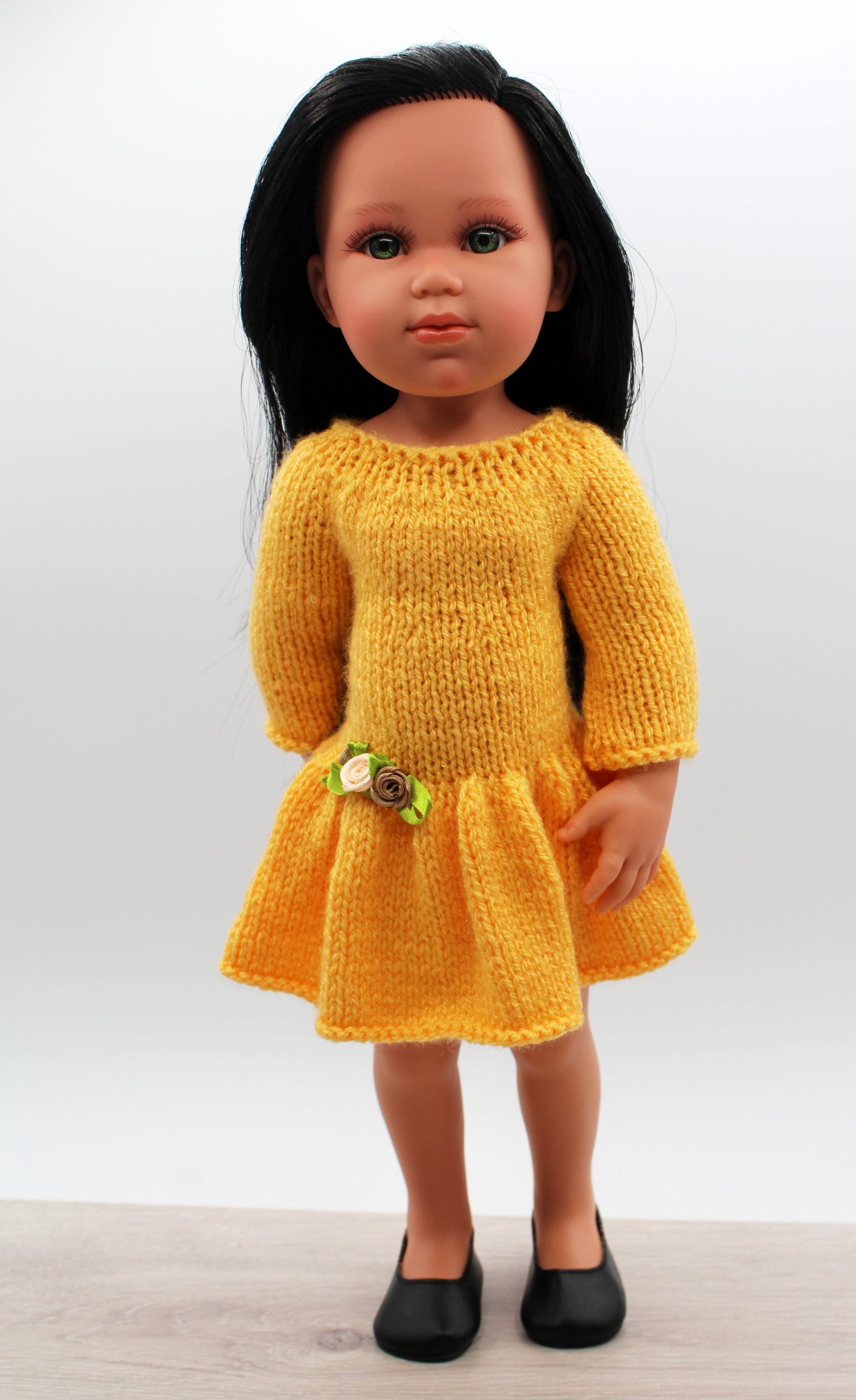 Knitting Pattern for Three Dresses for Paola Reina Soy Tu doll ( 45 cm ) and Llorens ( 42 cm ) dolls.