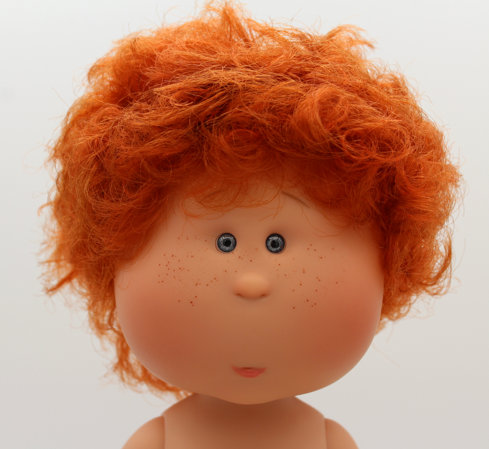 Mia and Mio dolls are small standing dolls that have been made entirely in Spain by Nines d'Onil using materials sourced from within Europe. They are 30cm/12″ all vinyl dolls with vanilla scent. Their heads turn and their limbs swivel.