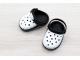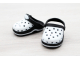 Shoes crocks for dolls like Mia from the Nines d'Onil brand, D'Nenes Carmen Gonzalez, WellieWishers. White and black.