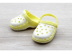 Shoes crocks for dolls like Mia from the Nines d'Onil brand, D'Nenes Carmen Gonzalez, WellieWishers. White and yellow.
