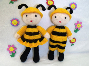 • Toy doll knitting pattern. Cuties. Honey bee dolls. PDF instant download knitting pattern.