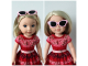 Sunglasses for doll. Butterfly shaped frame sunglasses. Fits Welliewishers, Corolle les cheries and Heart for Heart dolls. Made from plastic. Pink frame.